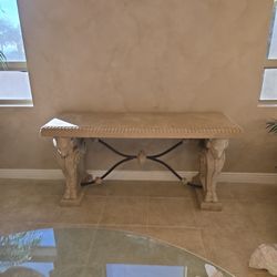 FINAL DAY! 12/15. Vintage Table : Monumental Stone Faux stone Rams Head with An Iron Stretcher$250Mesa, AZ