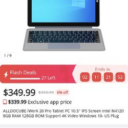 ALLDOCUBE iwork20 Pro Detachable Laptop Touchscreen Windows 11, Tablet 10.5" with Keyboard, Celeron N4120, Quad Core, 8GB RAM, 128GB SSD, FHD IPS 1920$250Mesa, AZ