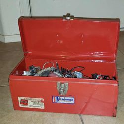 VINTAGE ORANGE RED STEEL METAL ALL AMERICAN TOOLBOX TOOL BOX FILLED W/ VARIOUS MIXED JUNK TOOLSf$20San Tan Valley, AZ
