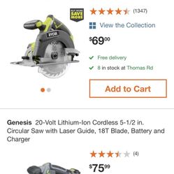 Ryobi 18V circular saw 5 1/2 in (tool only)$40Chandler, AZ
