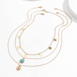 NEW Boho Gold Layered Necklace Set - Turquoise and Seashell $5Queen Creek, AZ