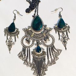 Silver and turquoise necklace with matching earrings hand made in Mexico$95Scottsdale, AZ