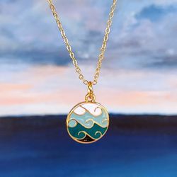 Ocean Wave Pendant Necklace Gold Blue Turquoise $14Gilbert, AZ