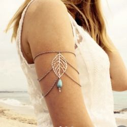 Body Arm Chain Necklace Silver Tone Drop Leaf Green Blue Imitation Turquoise$5Mesa, AZ
