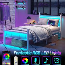 Twin Bed Frame with Headboard, Footboard,Heavy Duty Steel Slats with Charging Station,White$80Chandler, AZ