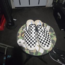 Vans Slide On Open Heel Shoes Leather Black White Checked Men's Size 8.5 Or Women's Size 10 Excellent Condition $50Scottsdale, AZ