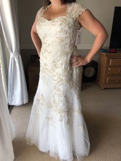 David Bridal Gorgeous ivory capsleeve, lace over satin wedding dress for sale, size 14. $300$300Mesa, AZ