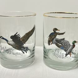 Barware ~ Vintage Richard E. Bishop Gold Rim Signature Waterfowl Old Fashioned Lowball Glasses$24Phoenix, AZ