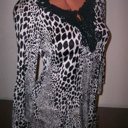 LIKE NEW BLACK WHITE AGORA ANIMAL PRINT LACE SILK LONG SLEEVED SHIRT BLOUSE DRESS TOP SIZE SMALL SM $20San Tan Valley, AZ