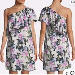 VINCE CAMUTO White GLACIER Floral Garden ONE SHOULDER Ruffle A-LINE DRESS 6$20Scottsdale, AZ
