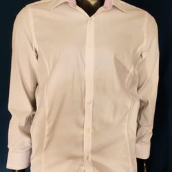 Paul Marcia Dress Shirt Men’s Small White Pink Trim Slim Fit Long Sleeve