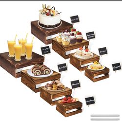 8 Pcs Buffet Risers With Mini Signs, Rustic Wood Cake Stands, Food Risers For Buffet Table, Dessert Display Stand, Wood Crates, Rustic Cake Stand For $40Avondale, AZ
