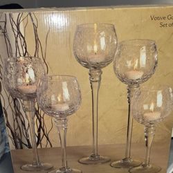 Long Stem Crackle Glass Goblet Votive Tealight Holders, Clear, Set of Five 8-12" New Old Stock $30Phoenix, AZ