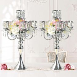 Kolnlala 2Pcs Silver 5-Arm Crystal Pendant Metal Candle Holder With Square Crystal Bowl, 22-Inch Tall Wedding Table Centerpiece For Holiday Party Even$55Avondale, AZ