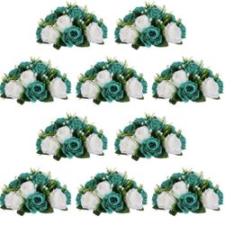 NUPTIO Flower Wedding Centrepieces For Tables - 10 Pcs 9.5in Diameter Teal & White Artificial Flowers Rose Ball For Centerpieces Table - Fake Rose Arr$60Avondale, AZ