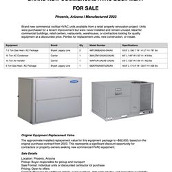 BRAND NEW COMMERCIAL HVAC EQUIPMENT FOR SALE$62,000Phoenix, AZ