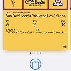 ASU vs U of A Basketball Tickets$500Tempe, AZ