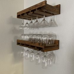 Solid Wood Wall Shelf w/ Glass Holder – Rustic Bar / Coffee Station$60Phoenix, AZ