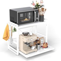 2-Tier Microwave Rack - Height Adjustable & Extendable Kitchen Shelf with Drawer - Carbon Steel - Includes Hooks & Reinforcement Suction Cups - Easy A$30Sun City, AZ