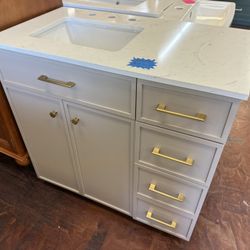 Marcote 36 in. Single Sink Greige Bath Vanity with White Volakas Engineered Marble Top $440Peoria, AZ