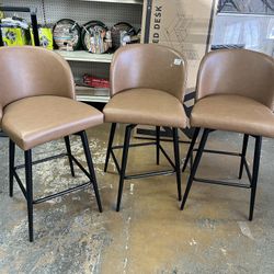CHITA 27" Swivel Upholstered Counter Bar Stools set of 3 with Back & Metal Legs, Faux Leather in Saddle Brown$125Phoenix, AZ