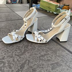 Marc Fisher SZ 6.5 Silver Studded Strappy White Heels Ankle Straps Chunky Heel$20El Mirage, AZ