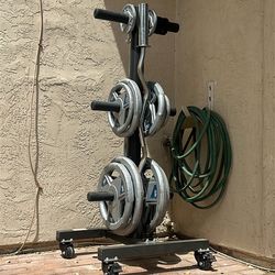 Commercial-Grade Weight Set + Rolling Plate Tree + 1 EZ Curl Bars$275Scottsdale, AZ