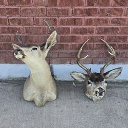 Rustic two deer head taxidermy mounts. One is a shoulder mount and the other is a head mount with antlers. Great for cabin decor or a man cave.$250Phoenix, AZ