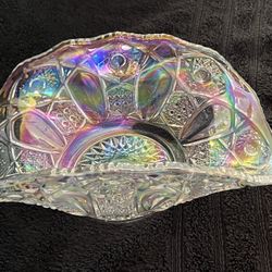 Vintage LE Smith Clear Iridescent Carnival Glass Banana Boat-Candy-Decor in the Quintec Pattern$30Scottsdale, AZ