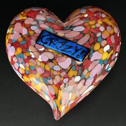 VTG Signed & Dated Mad Art Studios Glass 1999 Heart-Rainbow/Confetti-Blue Dichroic Crazy$30Scottsdale, AZ
