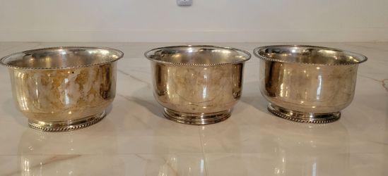 3 Silver Plated Large Bowls 10 in wide x6 in deep Just needs cleaned Located at Tatum and Greenway !1 has a small dent in the rim$15Phoenix, AZ