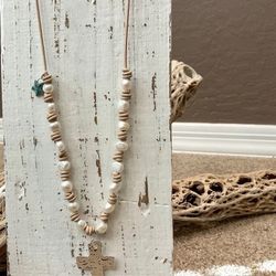 Genuine Cream Pearl, Tan Leather Cross Neclace$28Buckeye, AZ