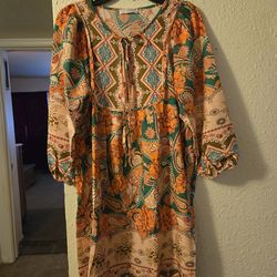 Bluetime orange and green midi dress with bell sleeves. Size M$12Phoenix, AZ