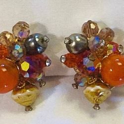 Vintage Vendome clip cluster earrings beads rhinestones orange gold signed $20Phoenix, AZ