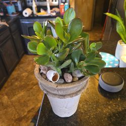 13in tall jade plant in heavy nice 7in ceramic pot with shells and stones$15Chandler, AZ
