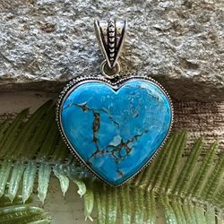 Natural Genuine Turquoise Heart Silver Pendant#23$40Sun City, AZ