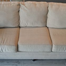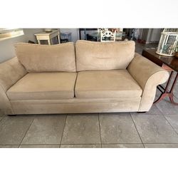 Pottery Barn Pearce roll arm sofa love seat upholstered in a beige microsuede GENTLY USED$450Phoenix, AZ