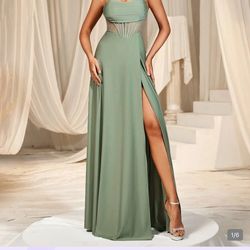 Dusty Rose Metallic Pleated Evening Gown - Women Dresses size large$75Phoenix, AZ