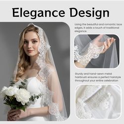 1 Tier Wedding Lace Veil,Fingertip Length Bridal Veil Lace Applique Veils for Women Wedding$10Phoenix, AZ