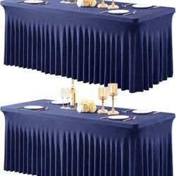 2 Packs Navy Blue Spandex Tableclothes for 8 Foot Rectangle Table, Spandex Table Covers 8FT Stretch Table Skirts Rectangle Wrinkle Free Fitted Tableco$45Phoenix, AZ