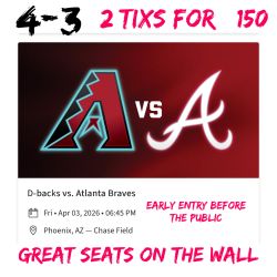 Arizona Diamondbacks vs Atlanta Braves April 4th 4 Tixs $120$120Buckeye, AZ
