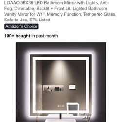LOAAO 36X36”LED Bathroom Mirror with Lights, Anti-Fog, Dimmable, Backlit + Front Lit, Lighted Bathroom Vanity Mirror for Wall, Memory Function, Temper$160Waddell, AZ