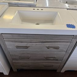 36 in Vanity Oak, Engineered Stone Top in Arabescato and White Sink SGD411$599Glendale, AZ