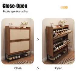 Walnut Wooden Shoe Storage Cabinet with Flip-Up Drawer$100Glendale, AZ