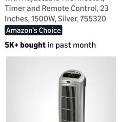 Lasko Oscillating Digital Ceramic Tower Heater for Home with Adjustable Thermostat, Timer and Remote Control, 23 Inches, 1500W, Silver, 755320, 8.5?L $45Sun City, AZ