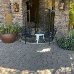 Two Black Wrought Iron Chair with a Heart Design And Vintage White Cast Iron Garden Side Table$175Phoenix, AZ
