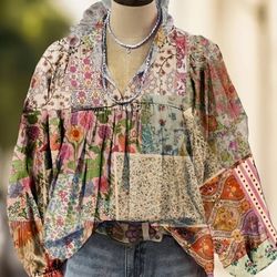 Boho Paisley Patches Floral Pattern Top Ladies Oversized XXL 🏵✨️🤎$20Phoenix, AZ