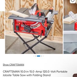 CRAFTSMAN 10.0-In 15.0 -Amp 120.0 -Volt Portable Jobsite Table Saw turns on but the button doesn’t want too stay you need to hold it,needs replaced th$100Surprise, AZ