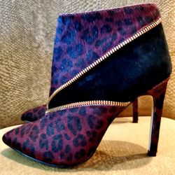 Sz 7M New RENVY Darra Ox Blood Black Leopard Print Side Zip Bootie Boot Shoe$55Goodyear, AZ