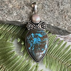 Teardrop Turquoise & Pearl Gemstone 2.5” Pendant#54512$40Sun City, AZ